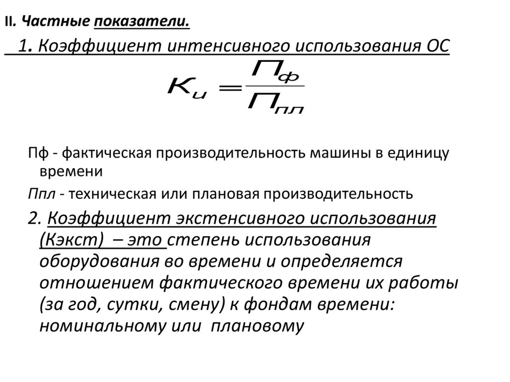 II. Частные показатели.1. Коэффициент интенсивного использования ОС