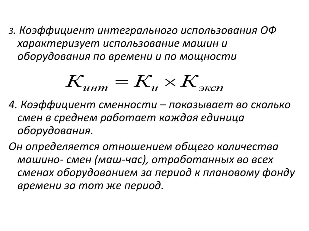 Kсм =3. Коэффициент интегрального использования ОФ