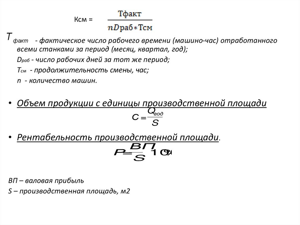 • Рентабельность производственной площади.