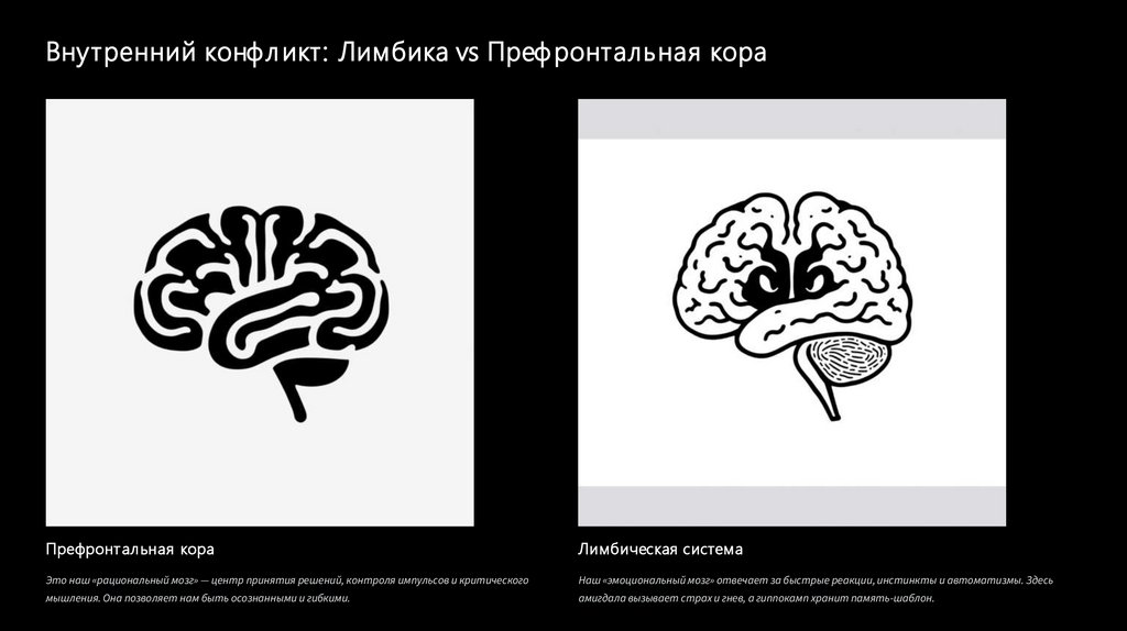 Внутренний конфл икт: Лимбика vs Префронтальная кораПрефронт альная кора