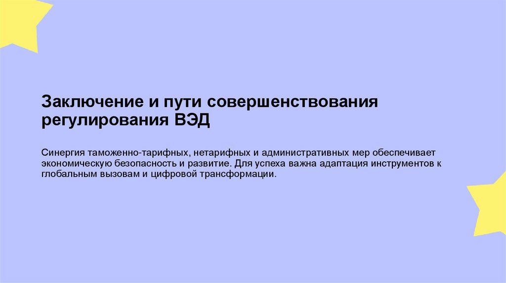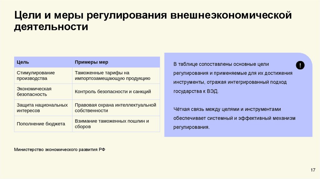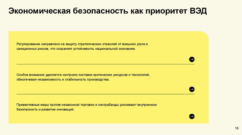 Экономическая безопасность как приоритет ВЭДРегулирование направлено на защиту стратегических отраслей от внешних угроз и