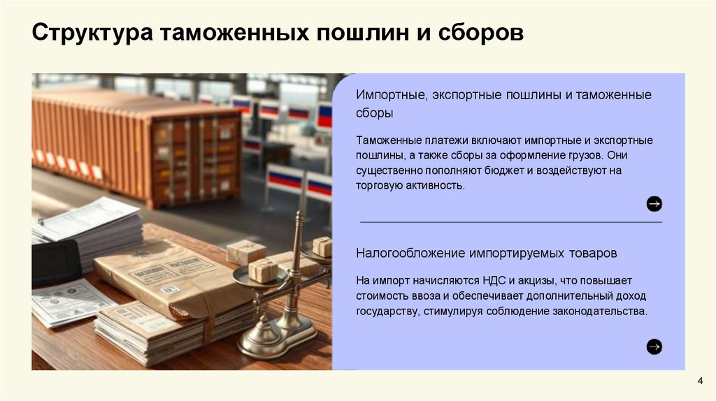Структура таможенных пошлин и сборовИмпортные, экспортные пошлины и таможенные