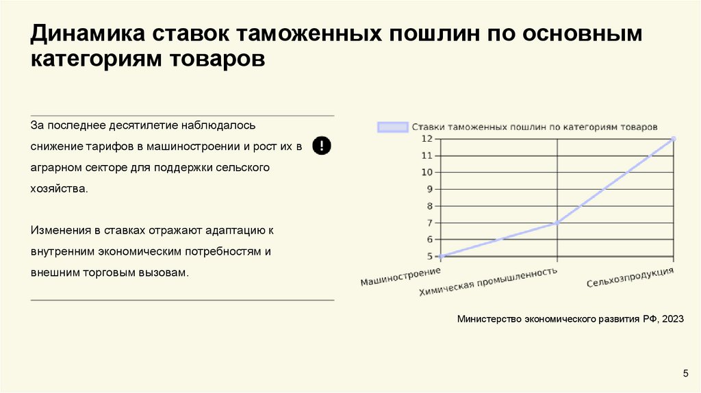 Динамика ставок таможенных пошлин по основнымкатегориям товаров