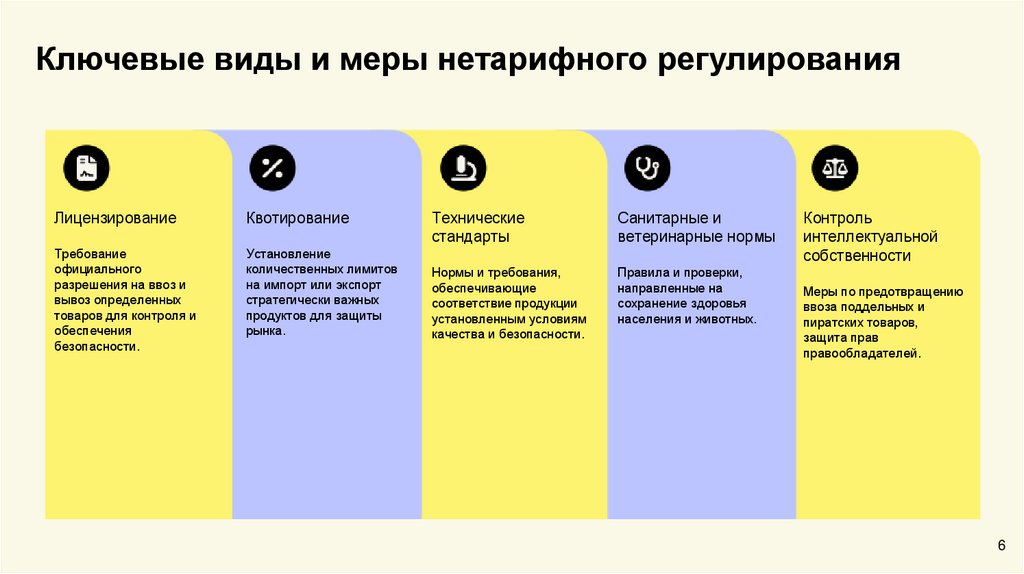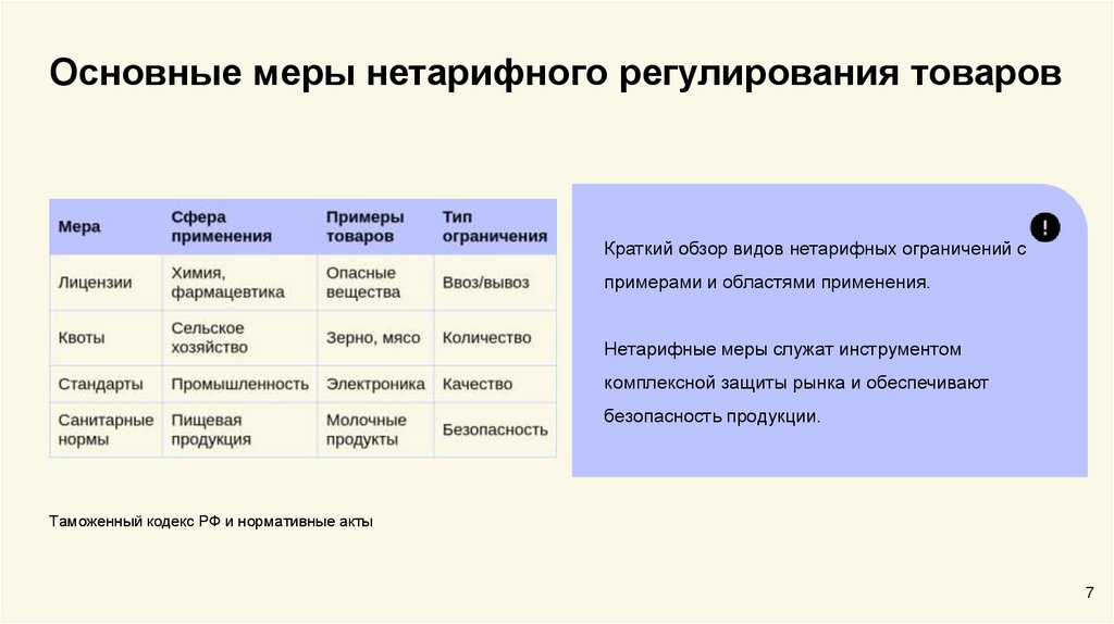 Основные меры нетарифного регулирования товаровКраткий обзор видов нетарифных ограничений с