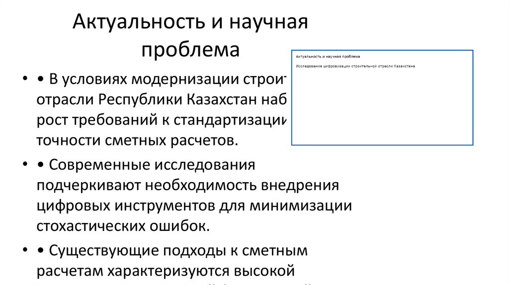 Актуальность и научнаяпроблема