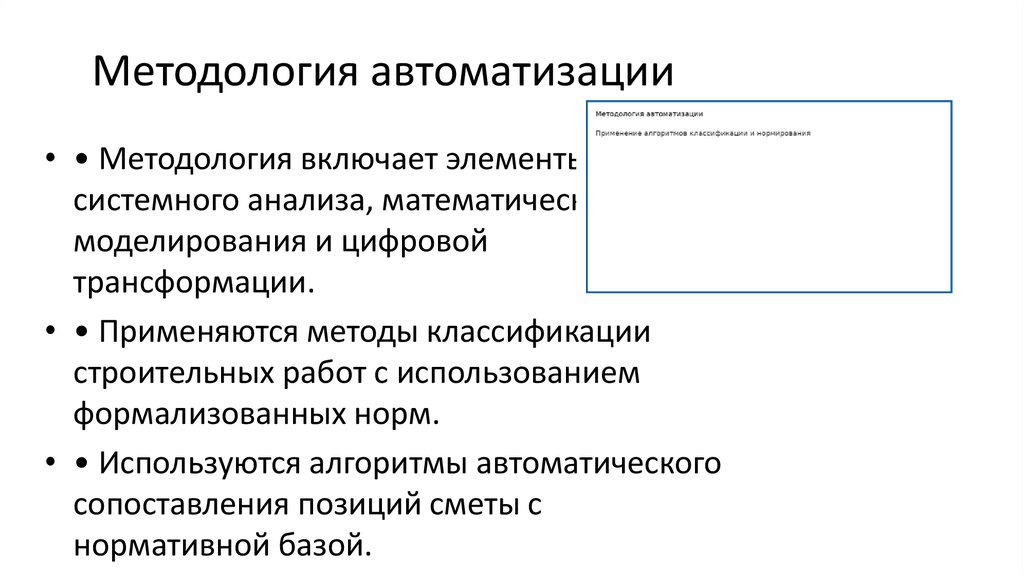 Методология автоматизации• • Методология включает элементы
