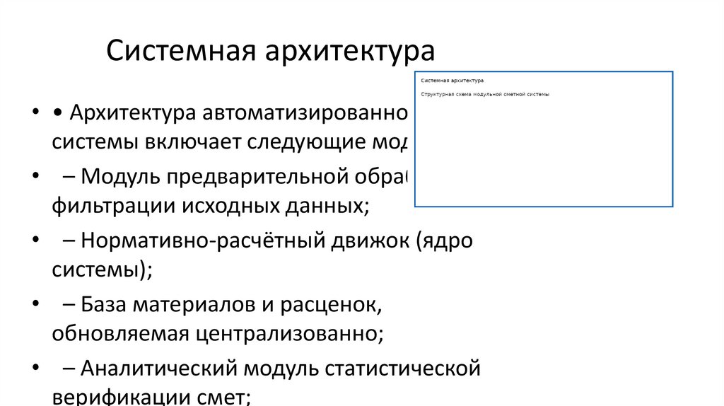 Системная архитектура• • Архитектура автоматизированной