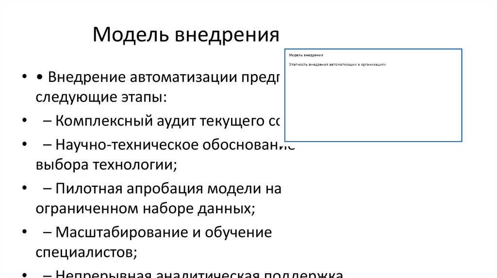 Модель внедрения• • Внедрение автоматизации предполагает