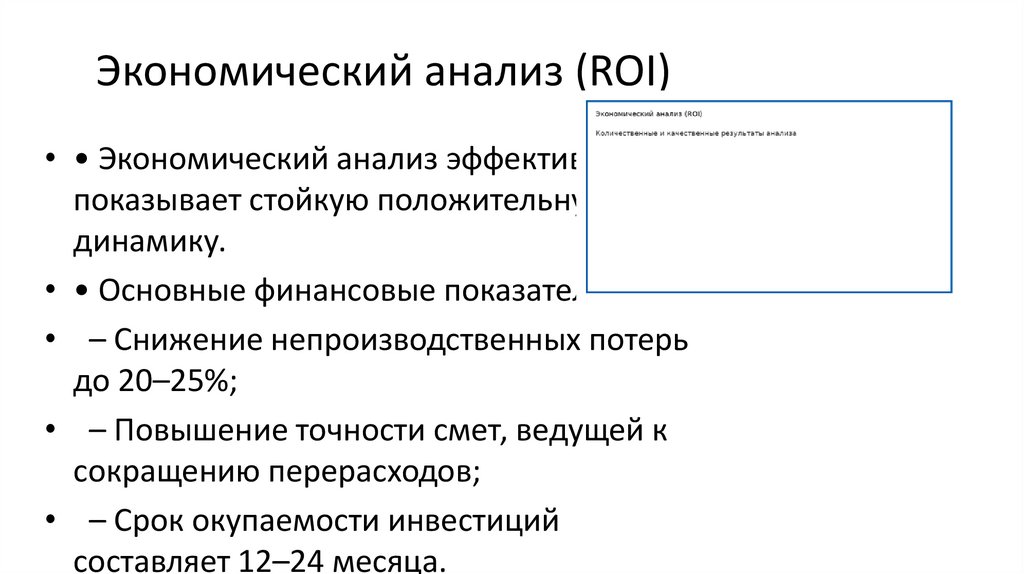 Экономический анализ (ROI)• • Экономический анализ эффективности