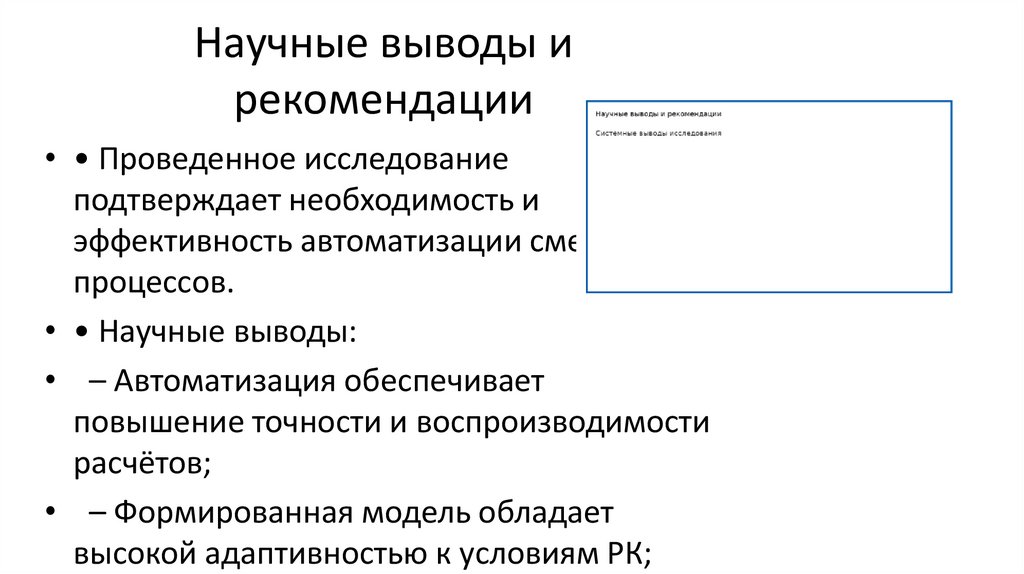 Научные выводы ирекомендации