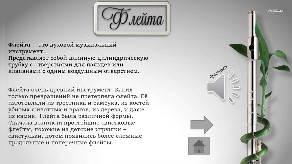 Флейта — это духовой музыкальныйинструмент.