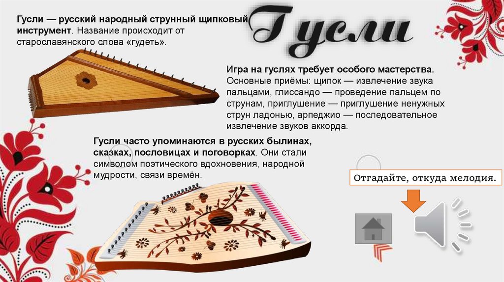 Гусли часто упоминаются в русских былинах,