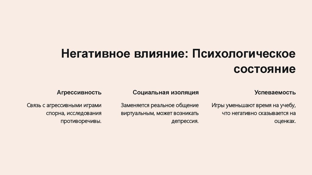 (например, проявление агрессии в случае проигрыша, отвлечение от реального мира).