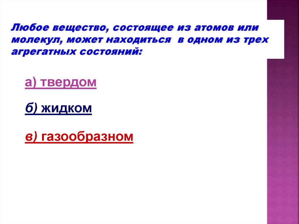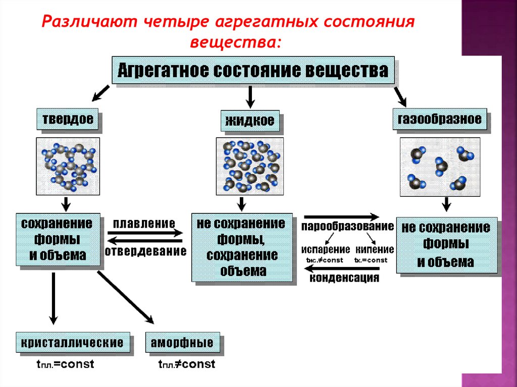 Любое вещество, состоящее из атомов илимолекул, может находиться в одном из трех