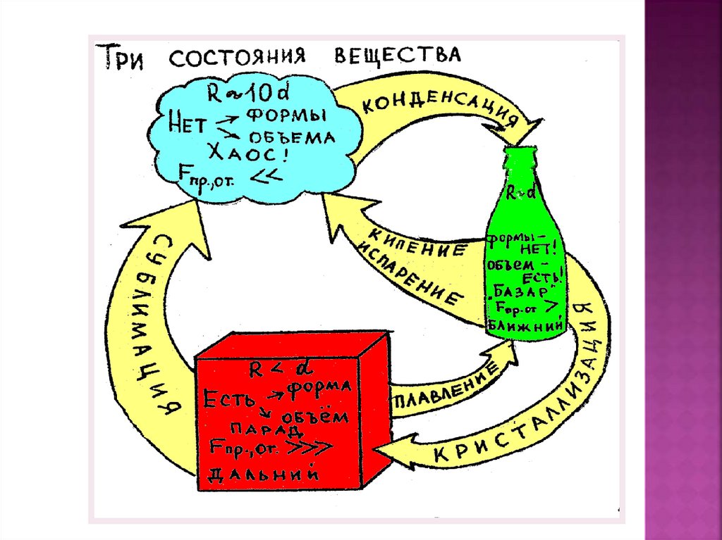 Притяжение или отталкивание частиц веществ возникает лишь в