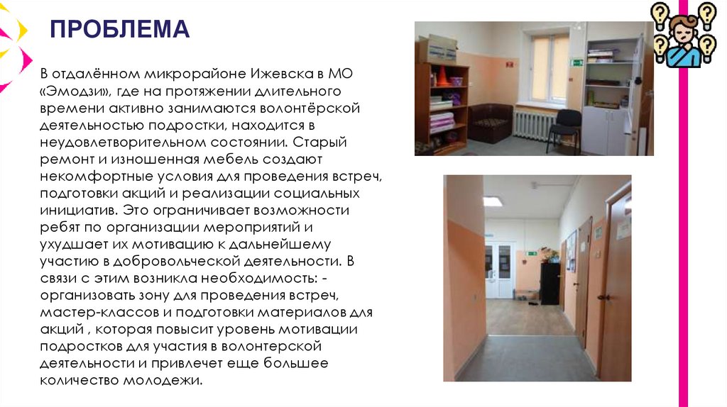 связи с этим возникла необходимость: организовать зону для проведения встреч,