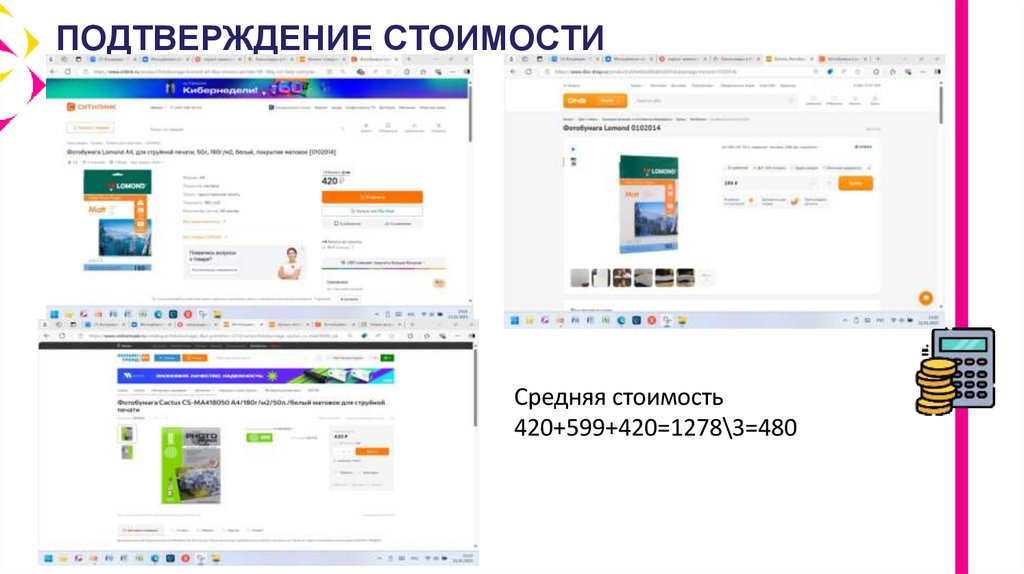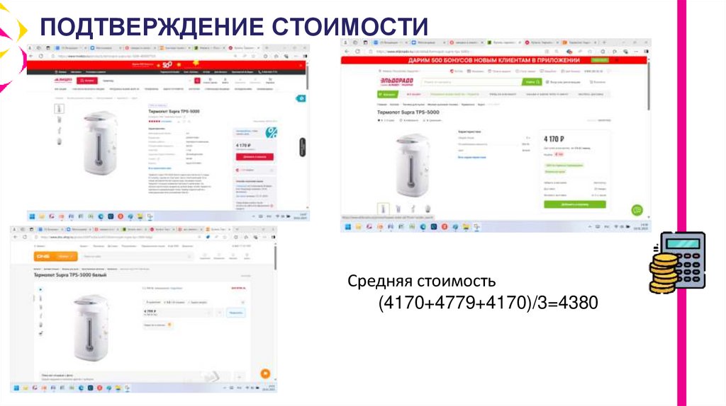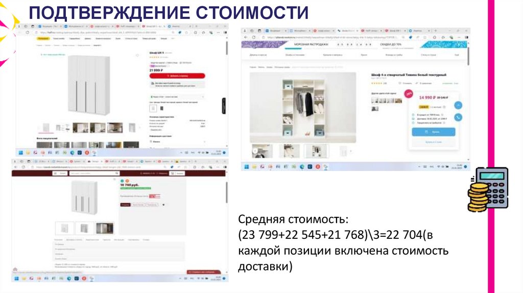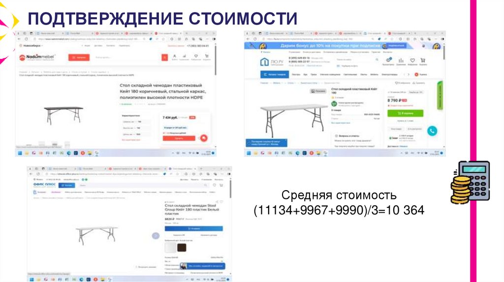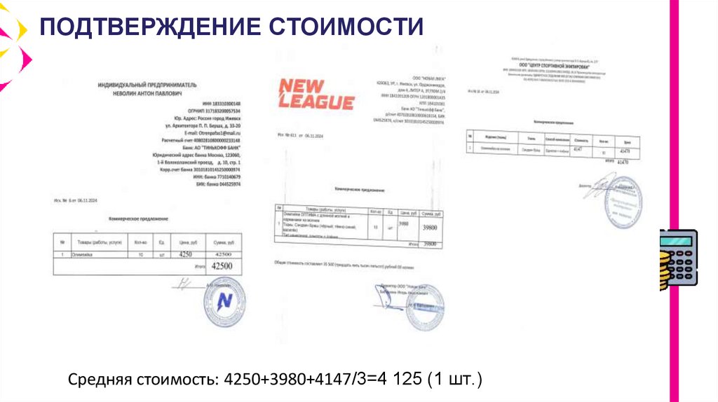 ПОДТВЕРЖДЕНИЕ СТОИМОСТИСредняя стоимость: 4250+3980+4147/3=4 125 (1 шт.)