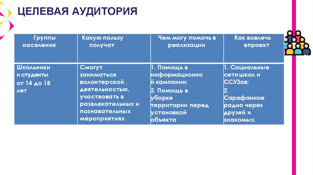 ЦЕЛЕВАЯ АУДИТОРИЯГруппы
