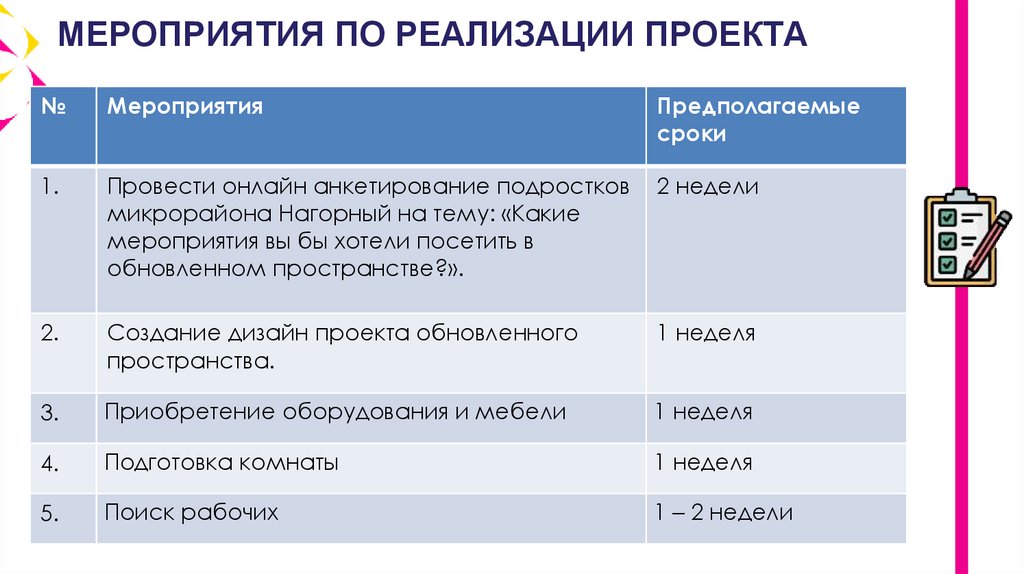 МЕРОПРИЯТИЯ ПО РЕАЛИЗАЦИИ ПРОЕКТА№