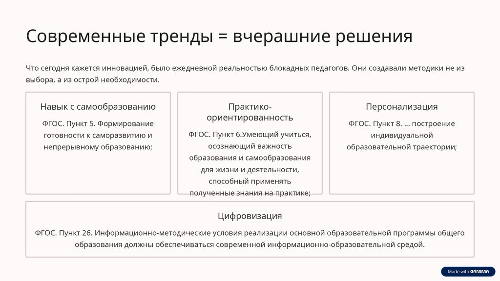 Современные тренды = вчерашние решенияЧто сегодня кажется инновацией, было ежедневной реальностью блокадных педагогов. Они создавали методики не из