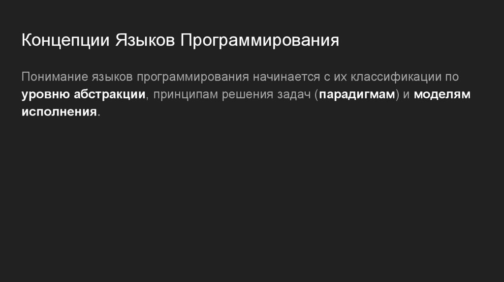 уровню абстракции, принципам решения задач (парадигмам) и моделям