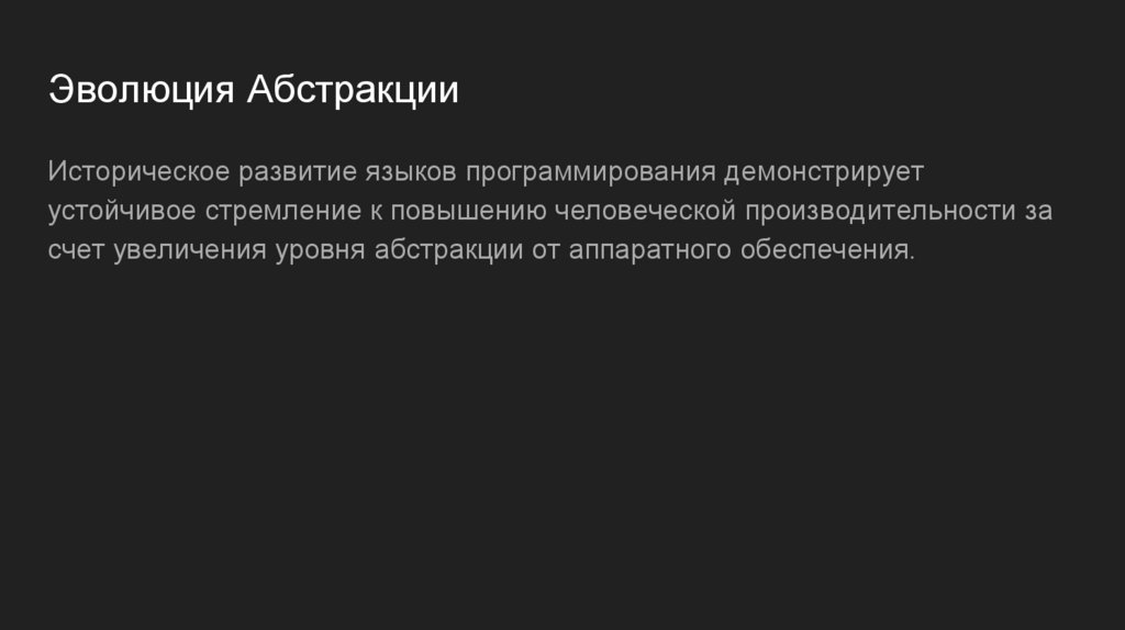 Эволюция АбстракцииИсторическое развитие языков программирования демонстрирует