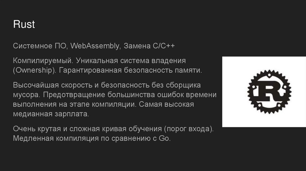 подъем. Go занимает 8-е место в TIOBE, а Rust — 14-е, с более высокой 8-й