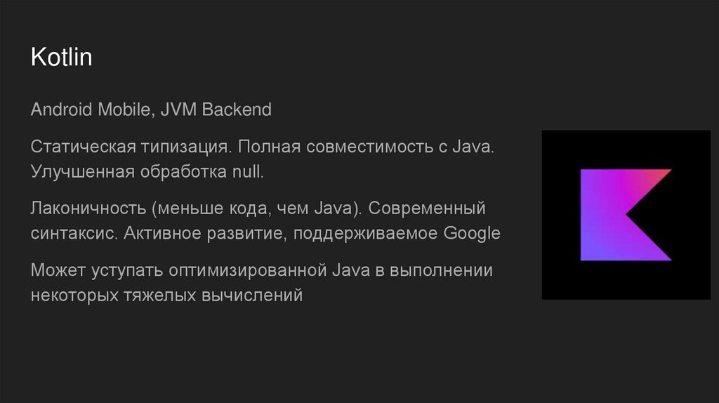 Kotlin на JVM), демонстрирует стремление к эволюции без потери