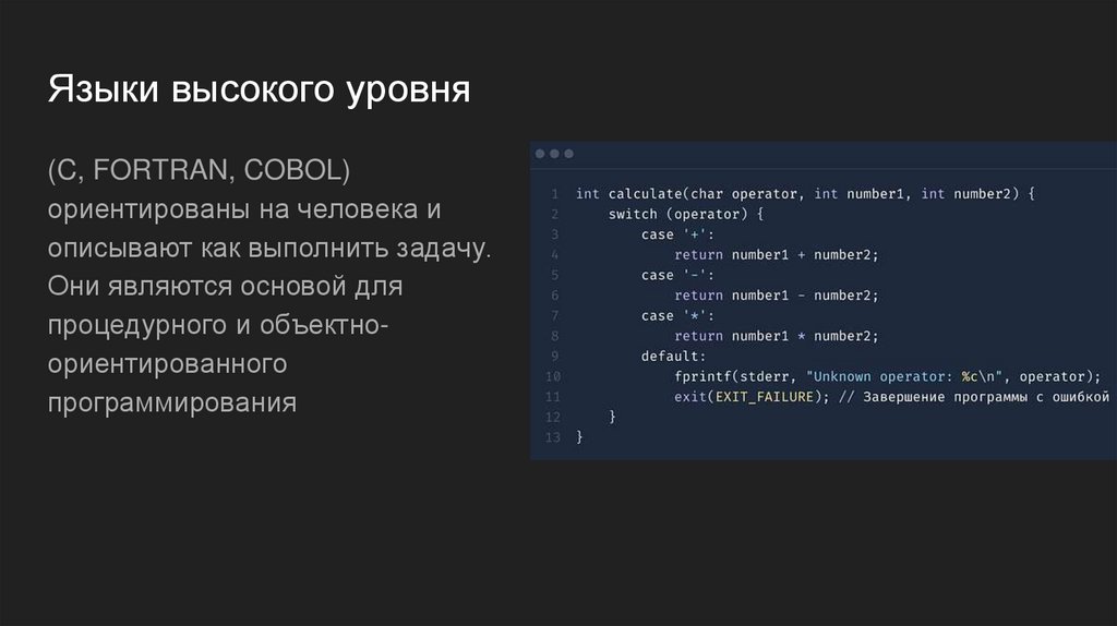 Языки высокого уровня(C, FORTRAN, COBOL)