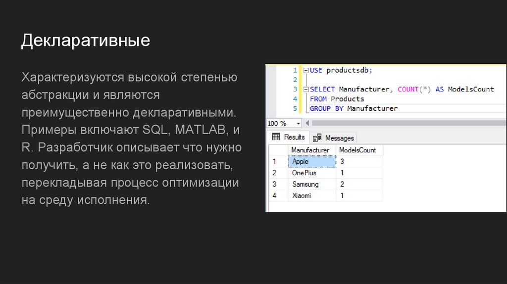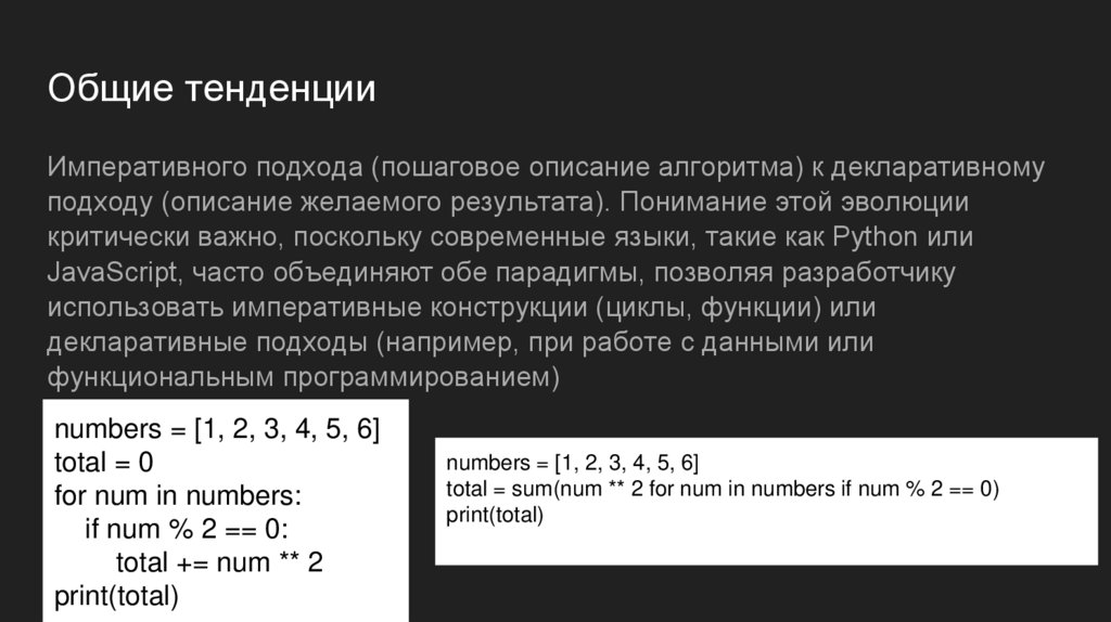 Общие тенденцииИмперативного подхода (пошаговое описание алгоритма) к декларативному