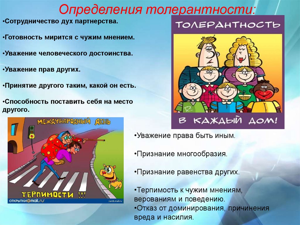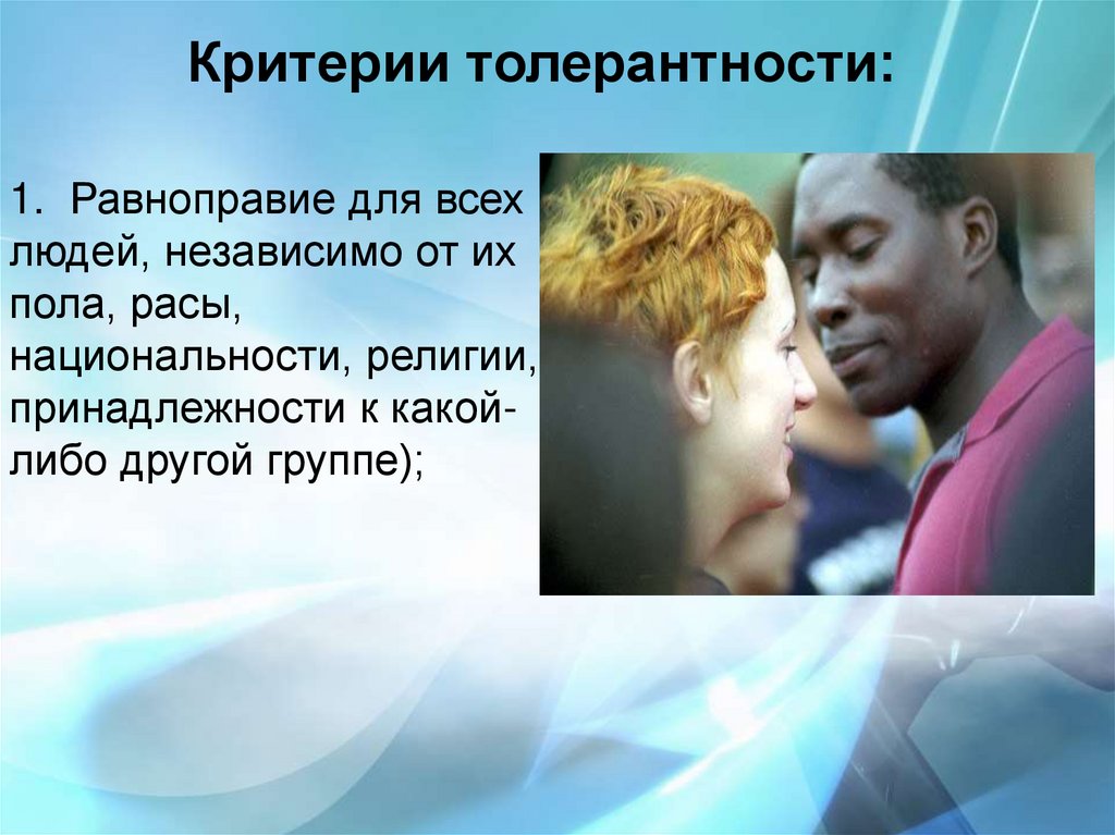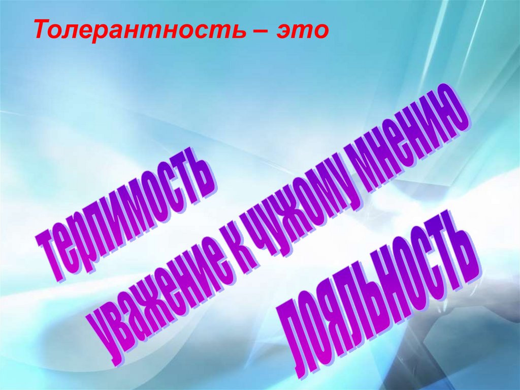 Основой толерантности как качества личностиявляется признание права на отличие.