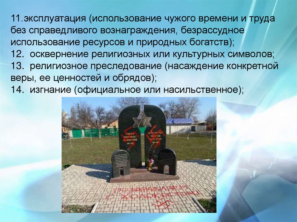 11.эксплуатация (использование чужого времени и трудабез справедливого вознаграждения, безрассудное