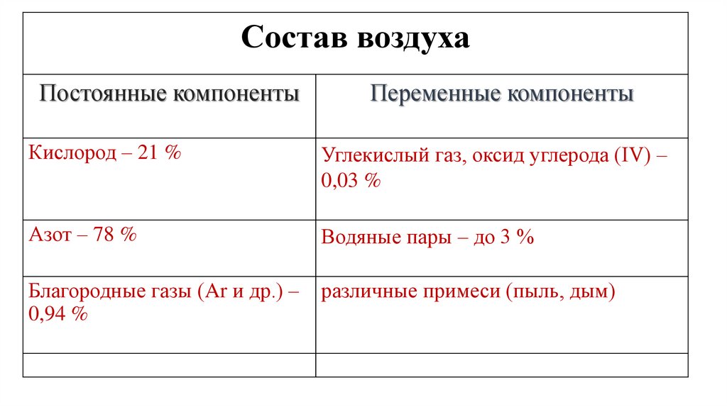 Воздух. Состав воздуха.