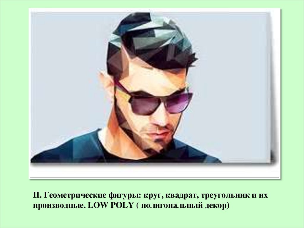II. Геометрические фигуры: круг, квадрат, треугольник и ихпроизводные. LOW POLY ( полигональный декор)