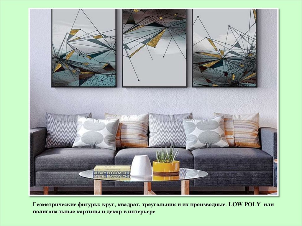 Геометрические фигуры: круг, квадрат, треугольник и их производные. LOW POLY илиполигональные картины и декор в интерьере