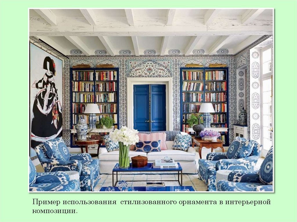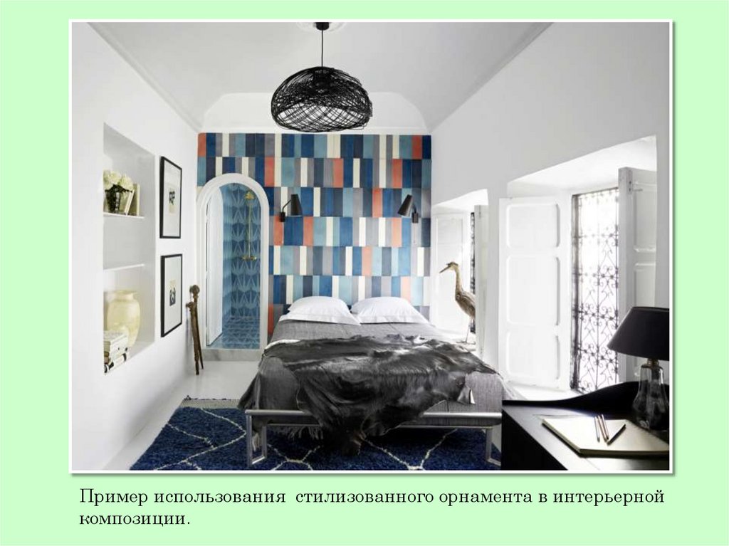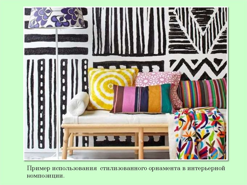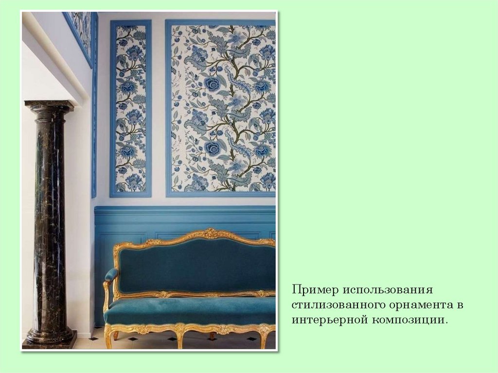 Пример использования стилизованного орнамента в интерьернойкомпозиции.