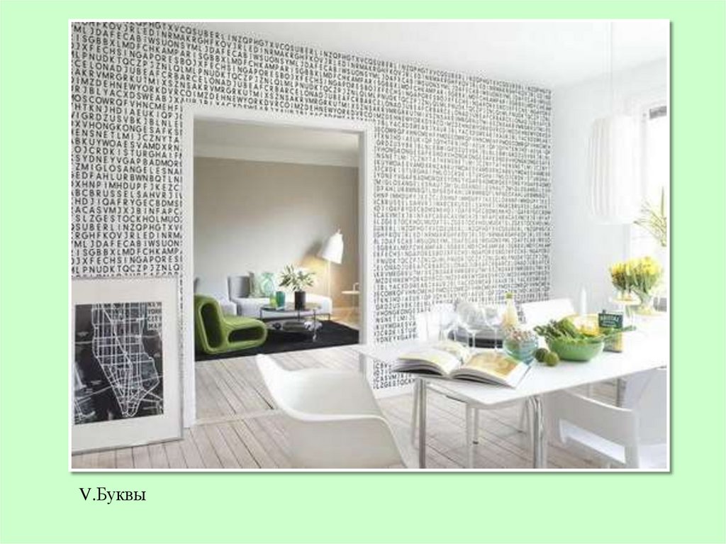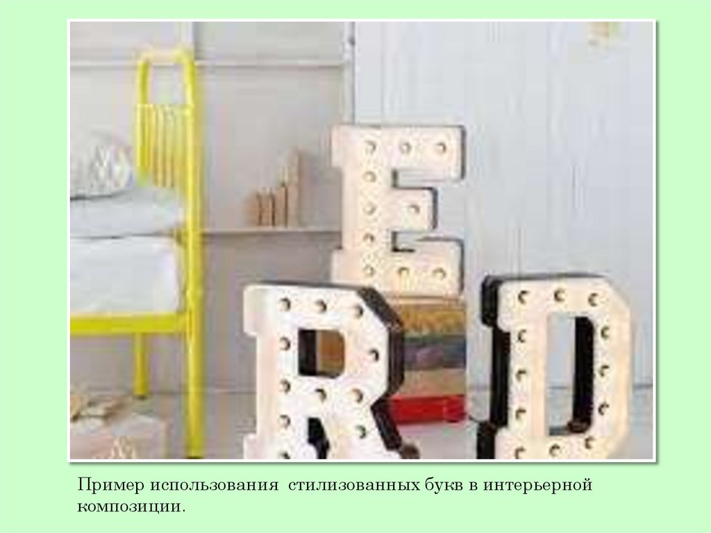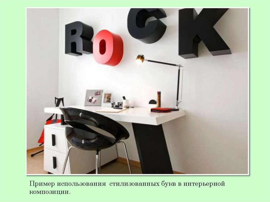 Пример использования стилизованных букв в интерьернойкомпозиции.