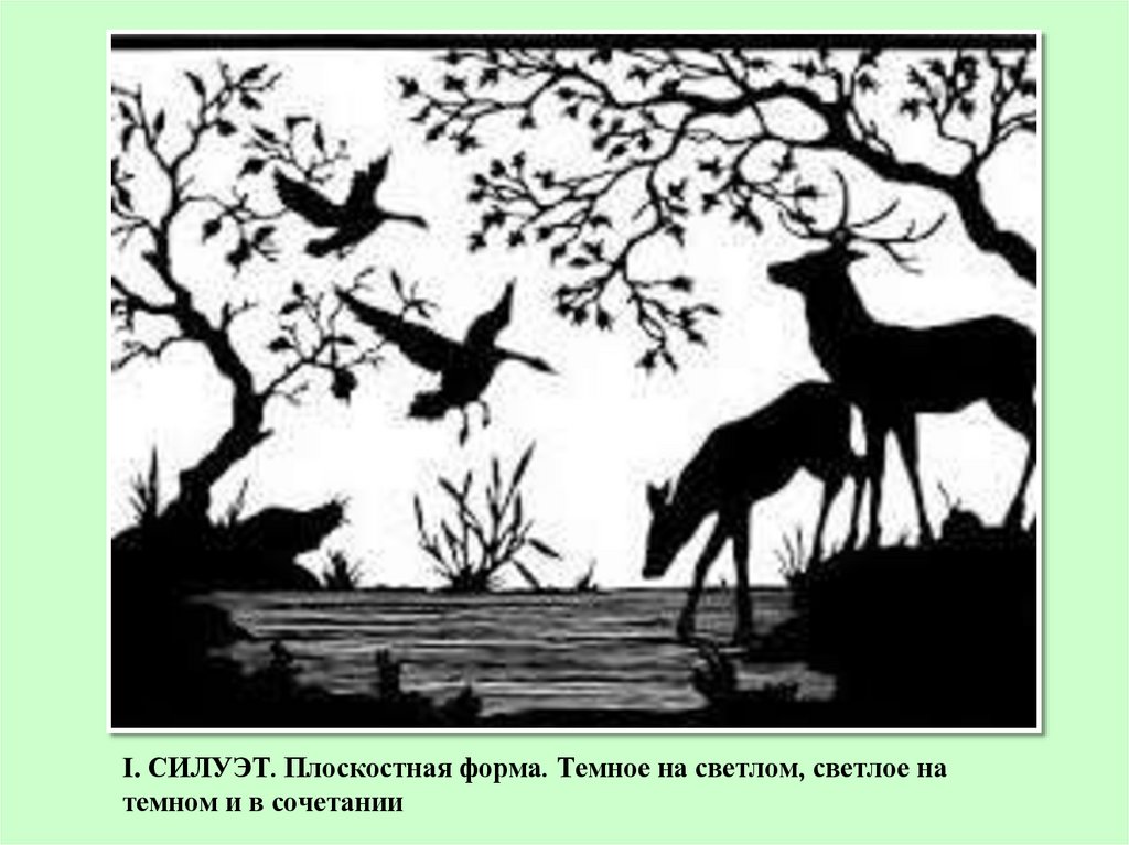 I. СИЛУЭТ. Плоскостная форма. Темное на светлом, светлое натемном и в сочетании