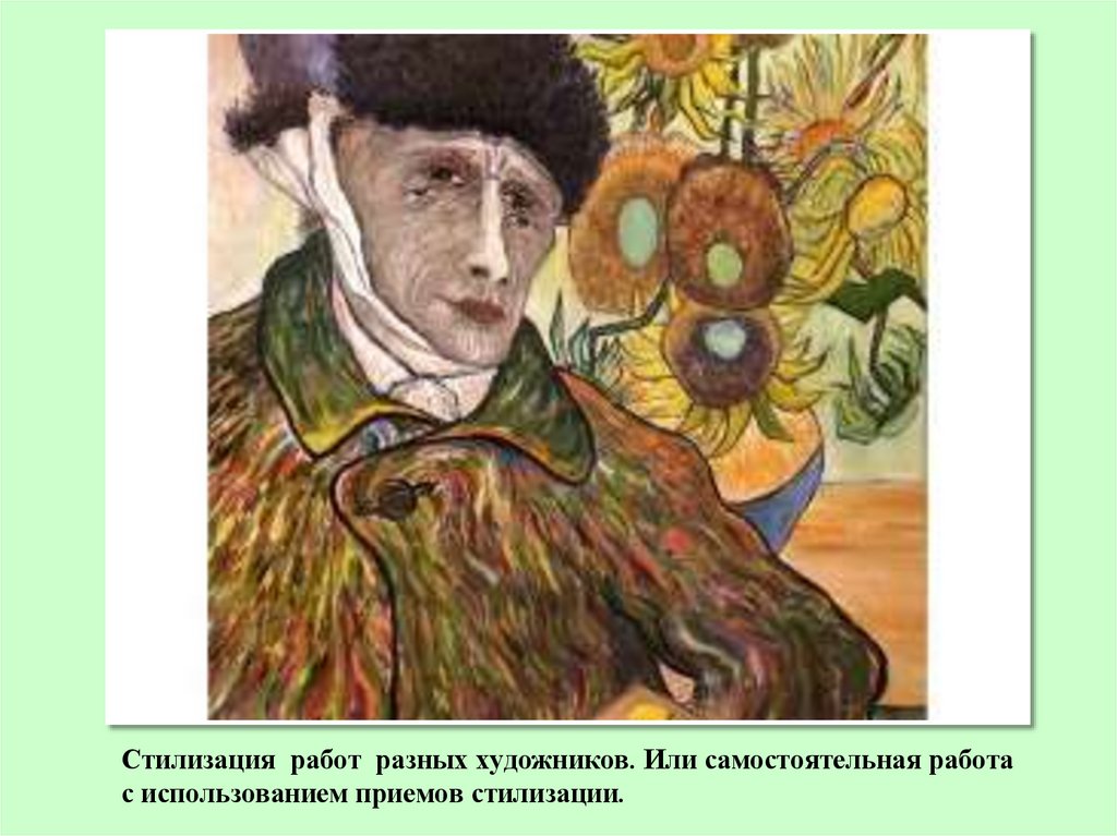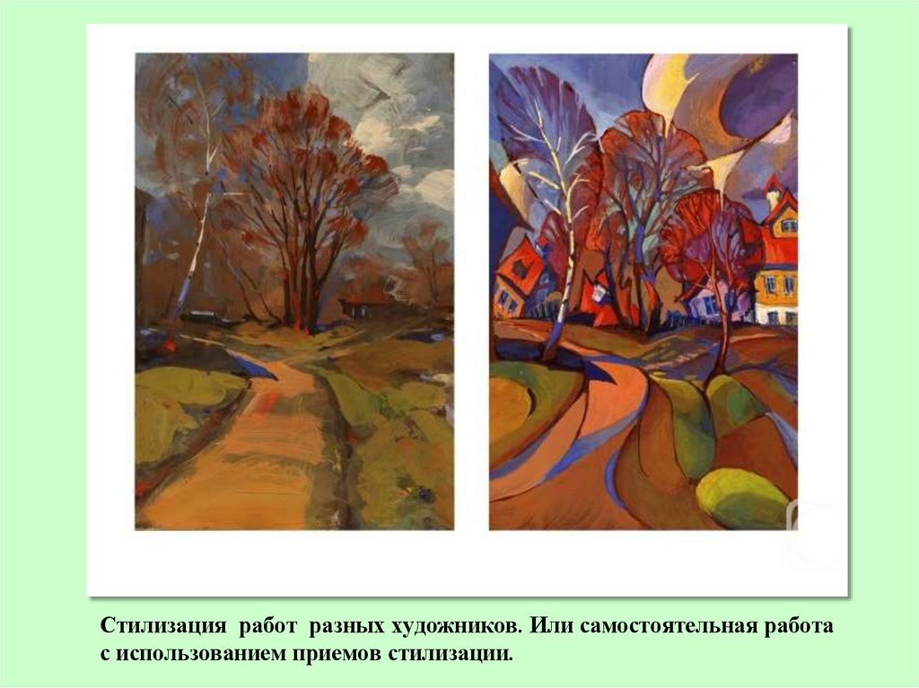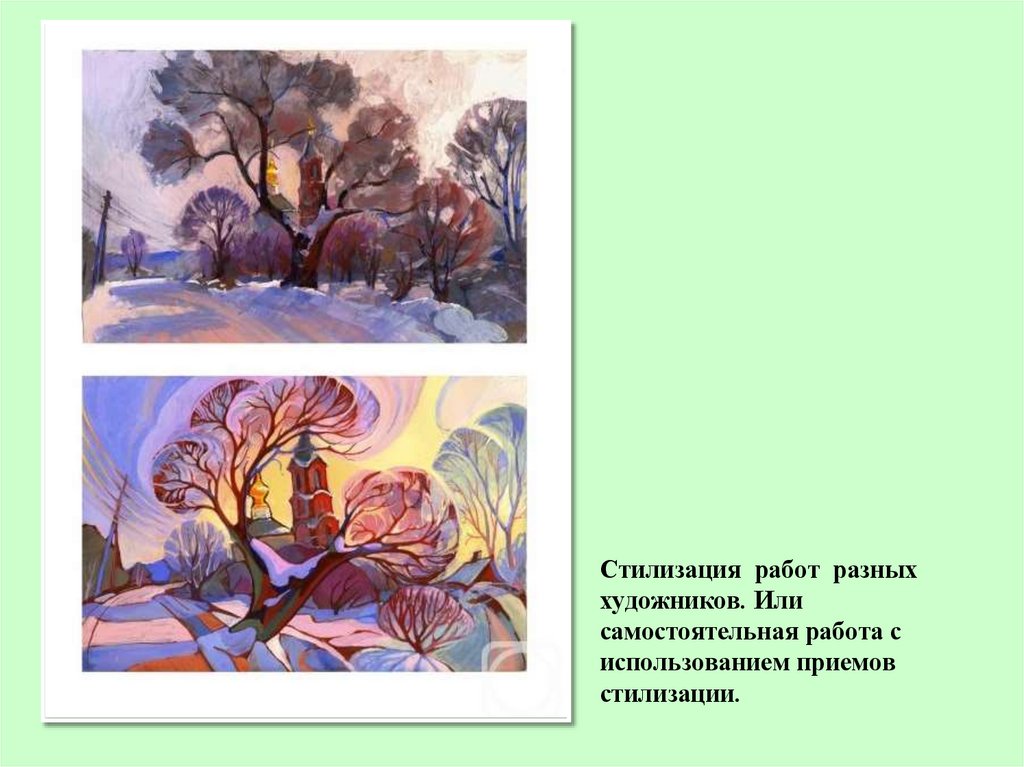 Стилизация работ разных художников. Или самостоятельная работас использованием приемов стилизации.