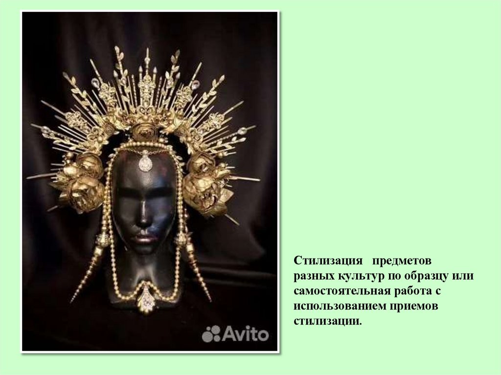 Стилизация предметов разных культур по образцу илисамостоятельная работа с использованием приемов стилизации.