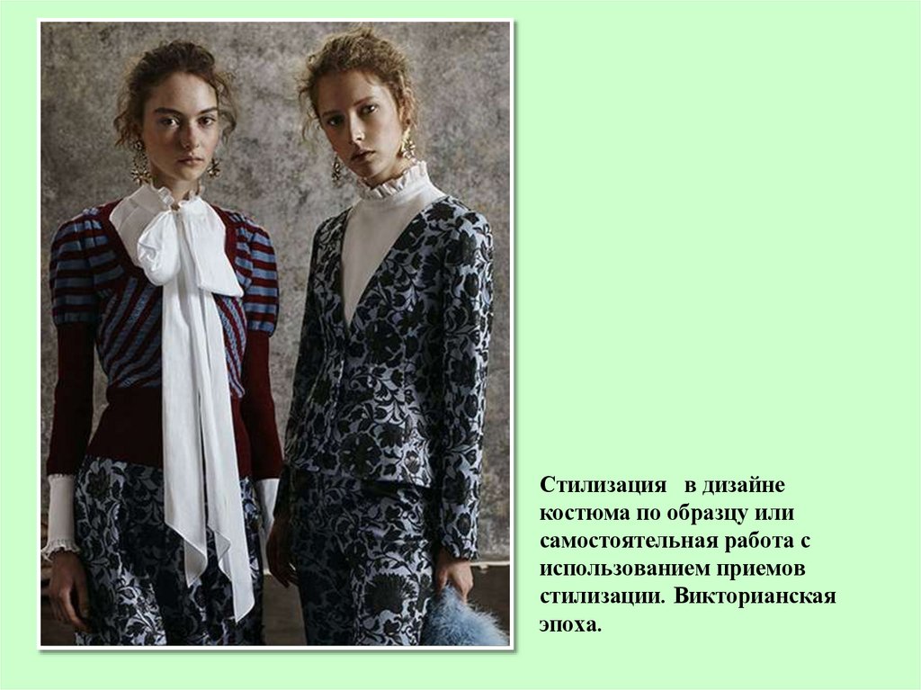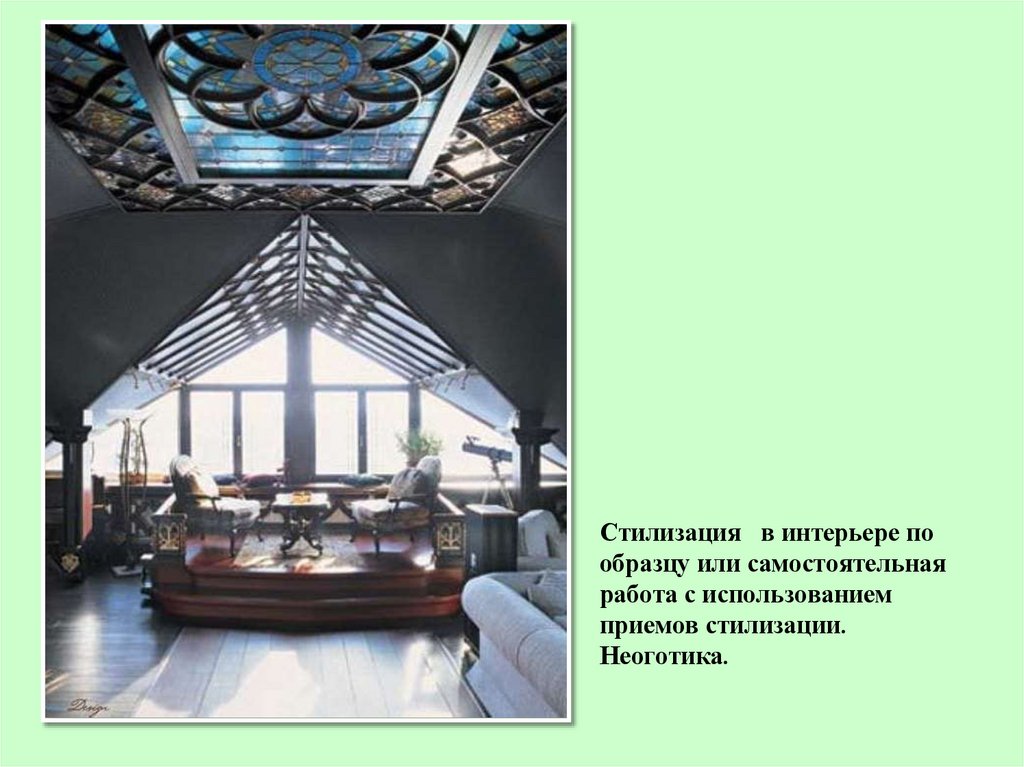 Стилизация — воспроизведение или «имитация образной системы и формальныхособенностей одного из стилей прошлого, использованных в новом