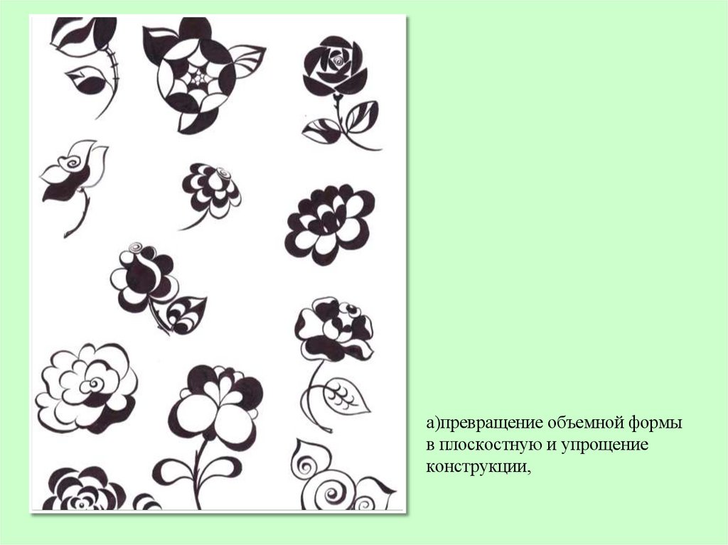 а)превращение объемной формыв плоскостную и упрощение