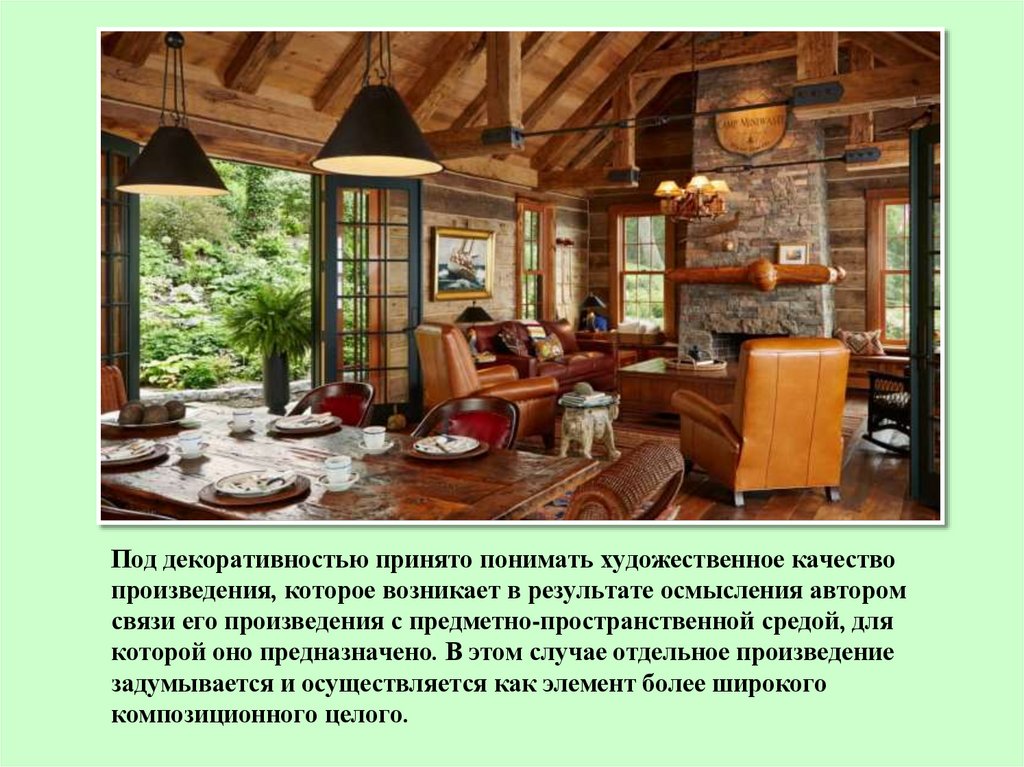 Под декоративностью принято понимать художественное качествопроизведения, которое возникает в результате осмысления автором