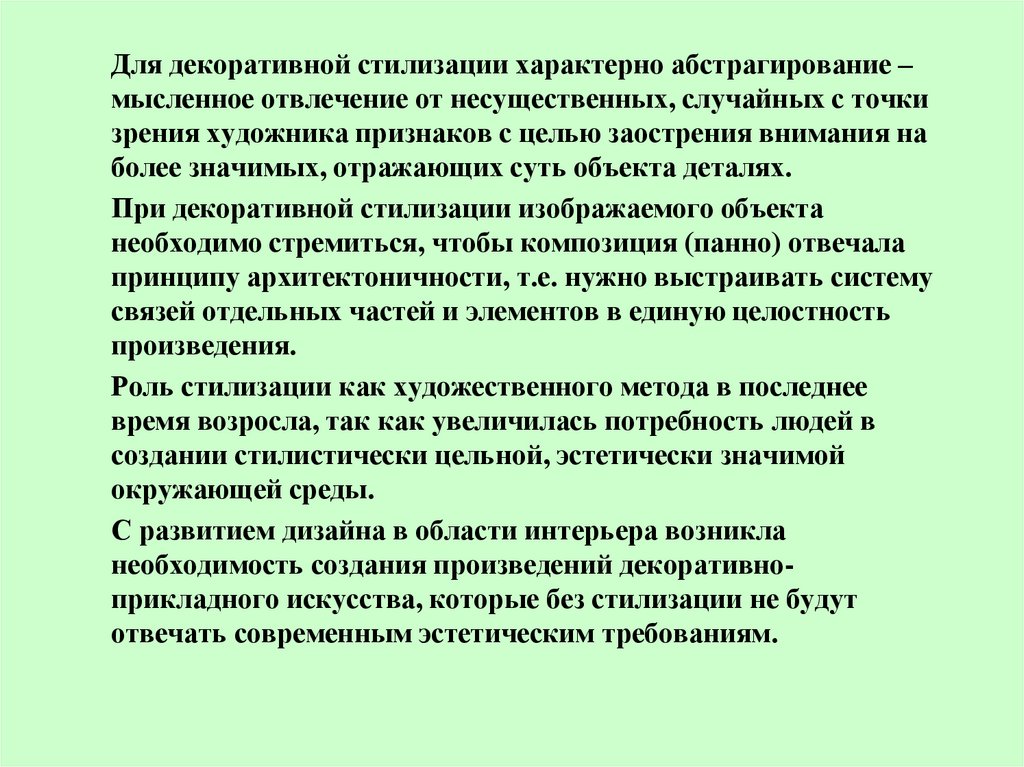 Для декоративной стилизации характерно абстрагирование –мысленное отвлечение от несущественных, случайных с точки