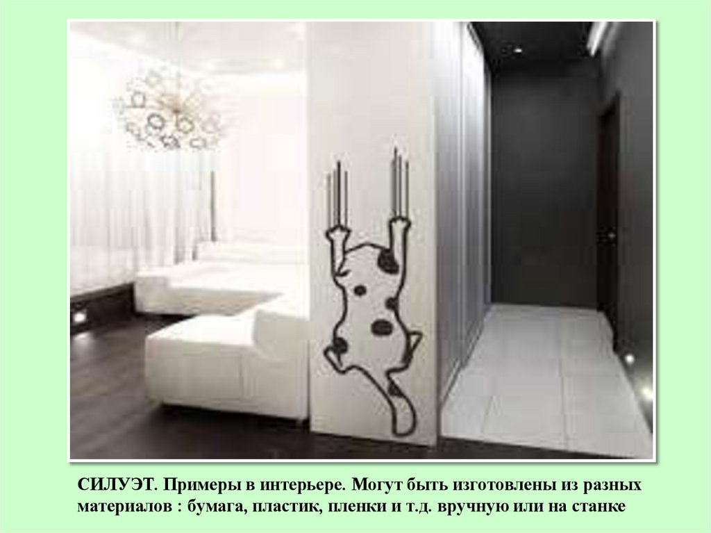 СИЛУЭТ. Примеры в интерьере. Могут быть изготовлены из разныхматериалов : бумага, пластик, пленки и т.д. вручную или на станке
