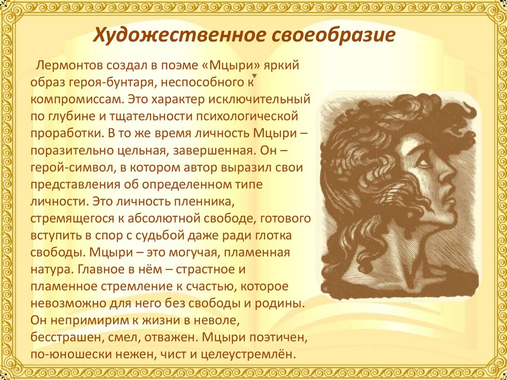 Художественное своеобразиеЛермонтов создал в поэме «Мцыри» яркий