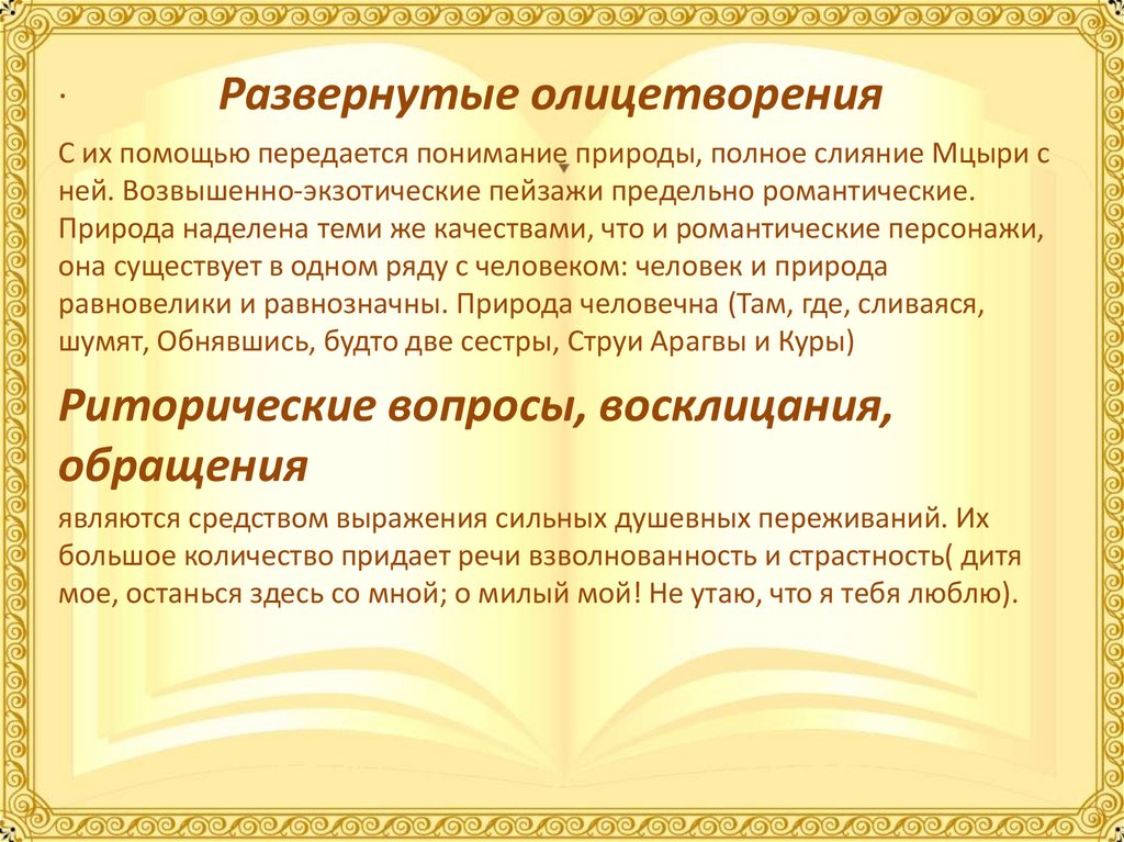 Мцыри, эмоциональное восприятие окружающего мира. Это язык высоких
