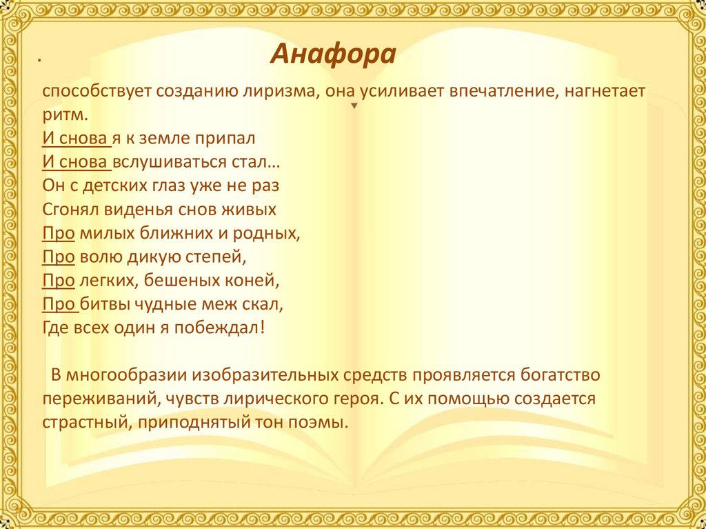 способствует созданию лиризма, она усиливает впечатление, нагнетает