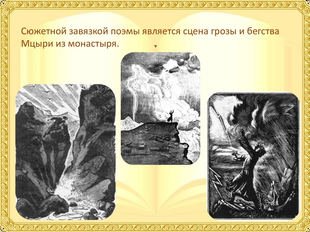 мысли героя о родине, сцена грозы и бегства Мцыри