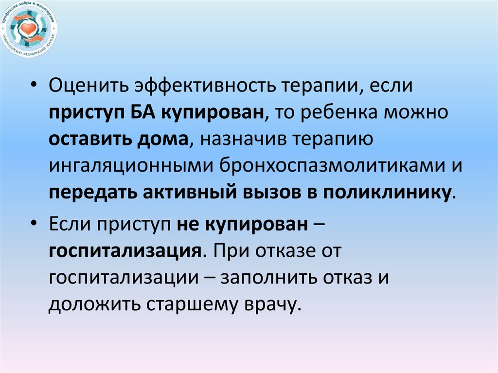 При неэффективности проведенной терапии в течение 30 мин неотложные